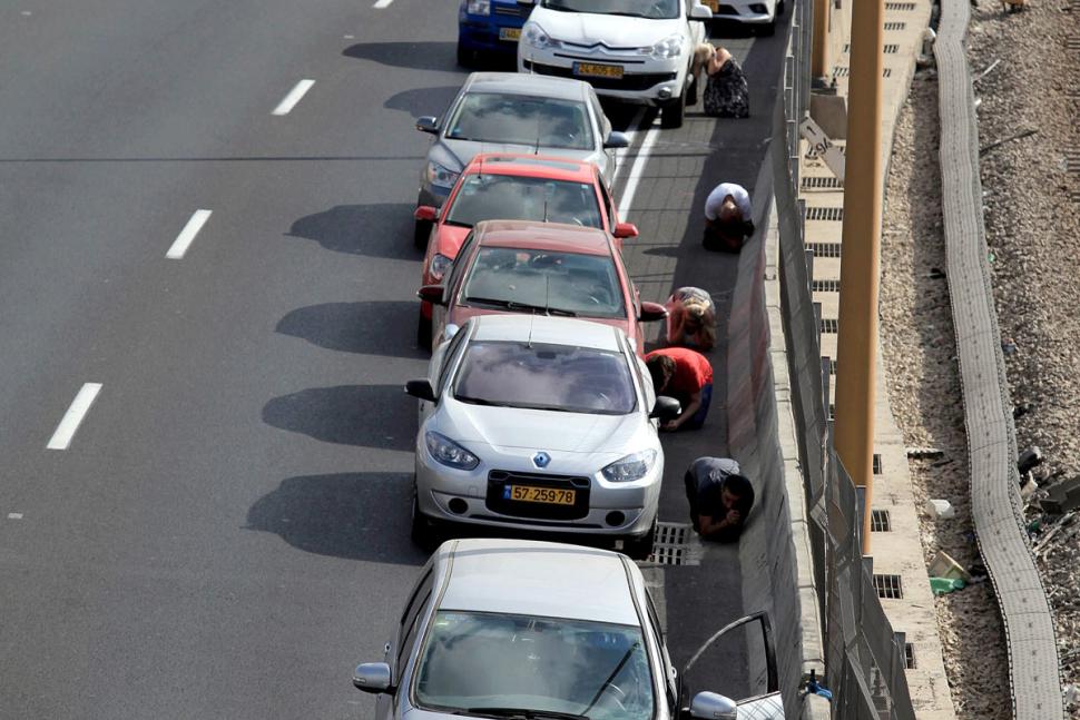 Des Israéliens sous les tirs de roquettes du Hamas. Crédit photo : Reuters