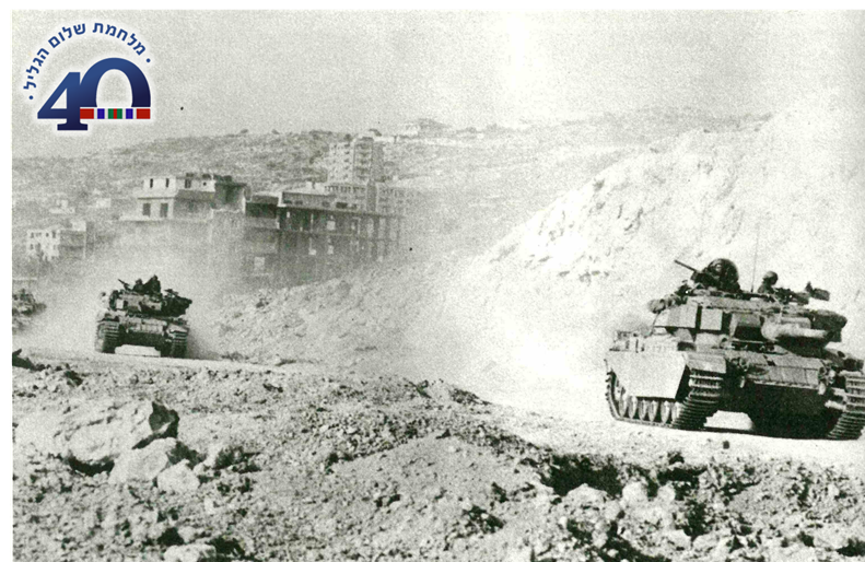 טנקי גדוד 74 בכניסה לכפר סיל על גבי הדרך שנפרצה במהלך הקרב השלישי (חוברת חטיבת גולני בשלום הגליל)